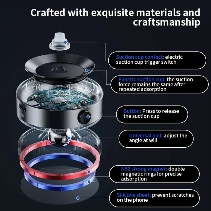 حامل مغناطيسي مدمج للهاتف المحمول، مصمم للتثبيت على الأسطح (غالباً في السيارة أو المكتب).
