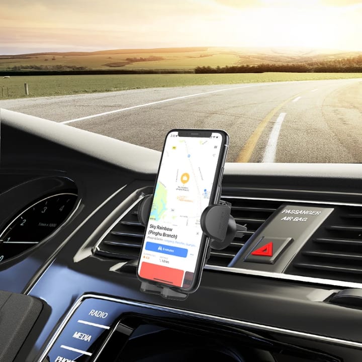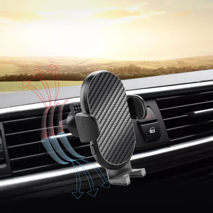 حامل جوال مع شحن لاسلكي بتصميم أنيق لفتحة التهوية! 🌬️ يوفر تثبيتًا آمنًا ومريحًا لهاتفك، مع سهولة وضعه وإزالته. استمتع بتجربة قيادة مريحة ورؤية واضحة لشاشتك.