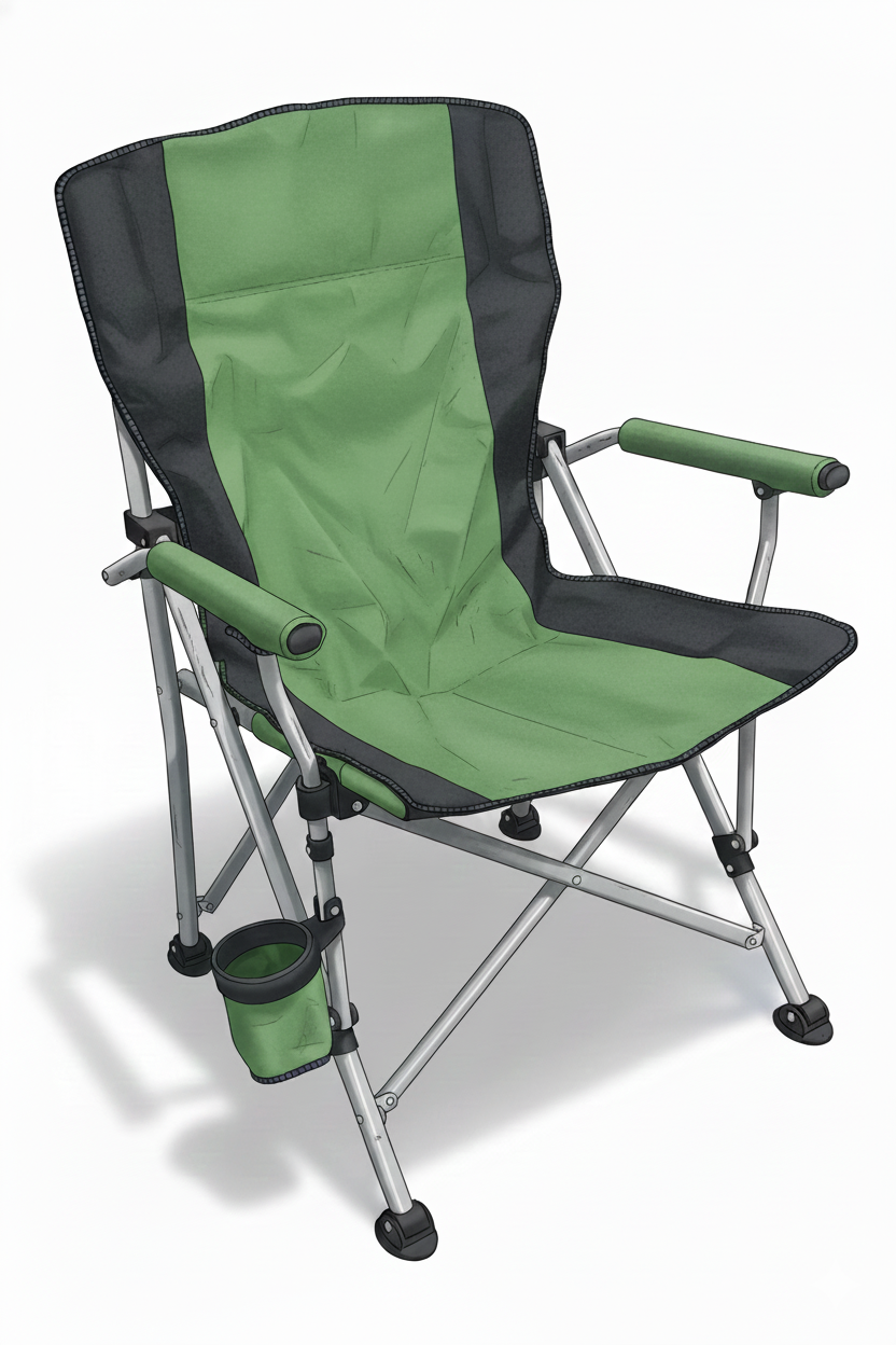 • تصميم عملي: مزود بمساند أذرع مبطنة وحامل أكواب جانبي عملي، مما يجعله الرفيق المثالي لرحلات التخييم، الشاطئ، أو الفعاليات الرياضية.