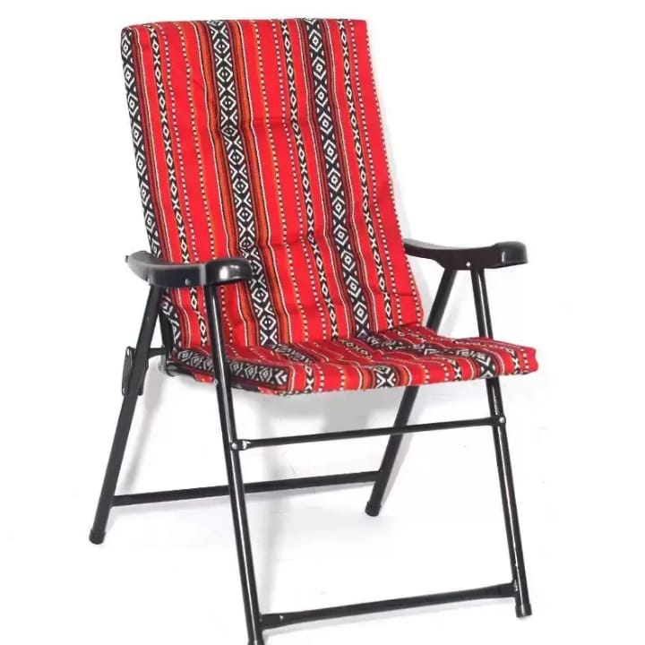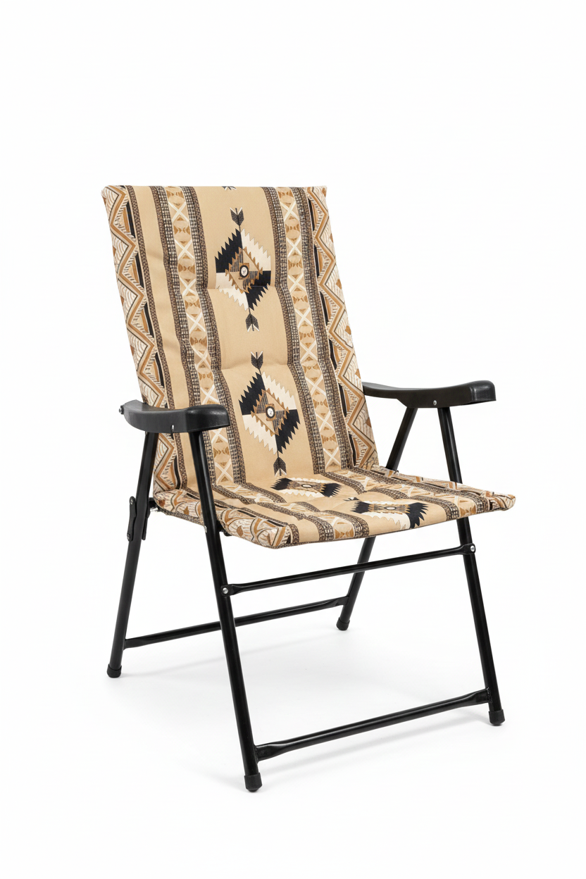 كرسي تخييم واسترخاء فاخر يجمع بين الراحة الفائقة والتصميم الجمالي المميز المستوحى من النقوش العربية البدوية الأصيلة. يتميز بهيكل معدني قوي قابل للطي لسهولة التخزين والنقل، ومقعد وظهر مبطن لراحة مثالية خلال الجلوس الطويل. الخيار المثالي لإضافة لمسة أناقة دافئة لجلسات التخييم، الحديقة، أو التجمعات الخارجية.