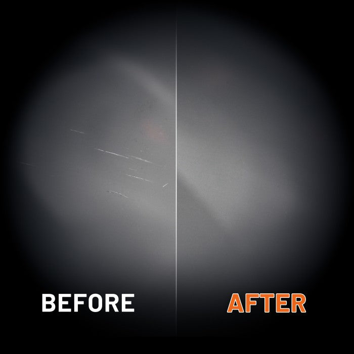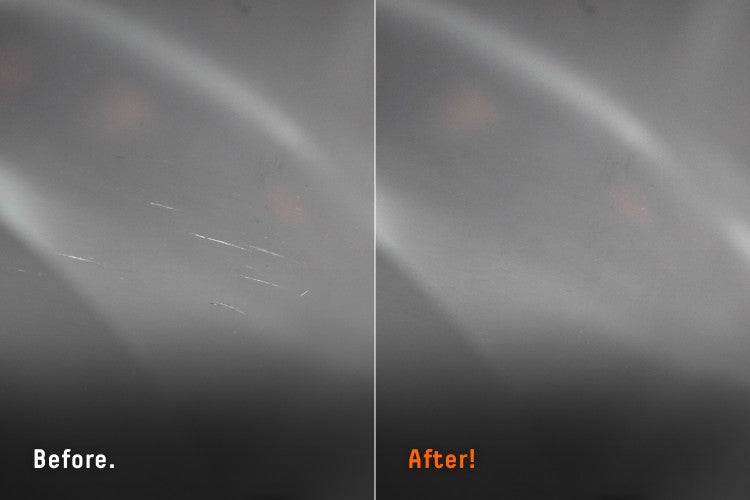 نظام ثنائي المكونات: يعمل "ملمع الماس التقني" على إزالة الخدوش، بينما يقوم "ملمع الماس فائق الأداء" بتلميع الزجاج لمنحه لمعاناً براقاً.