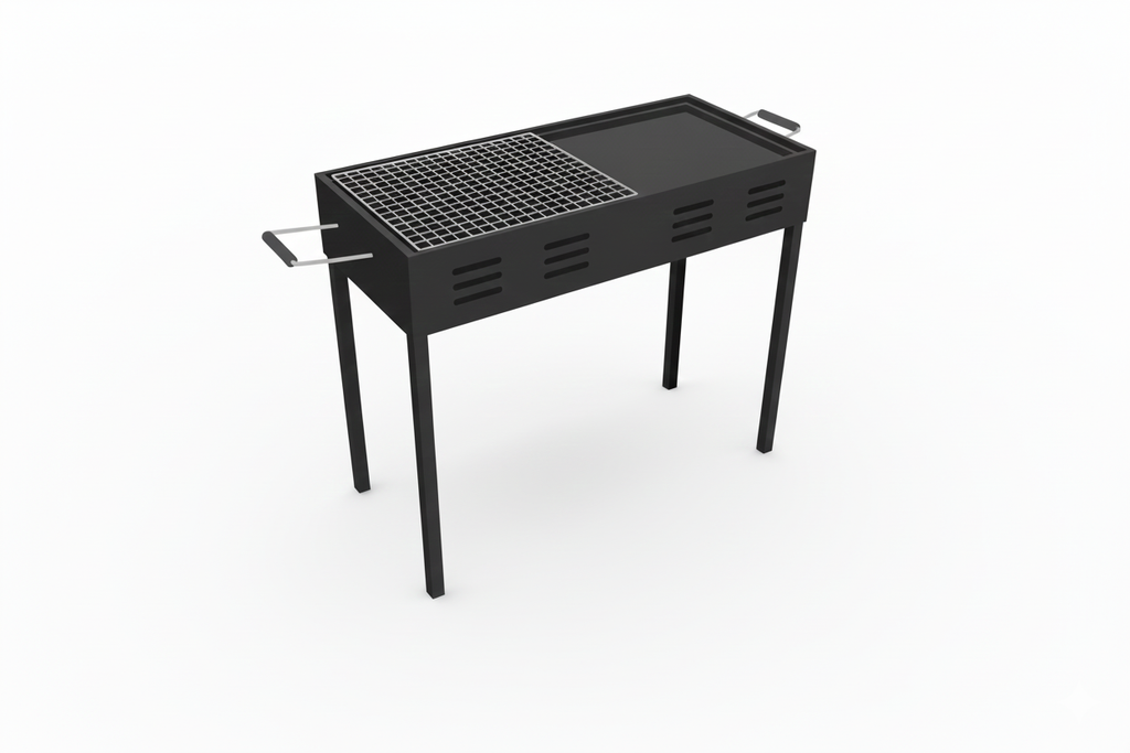 اجعل حفلات الشواء في الهواء الطلق لا تُنسى مع هذه الشواية العملية والمتعددة الاستخدامات. يجمع تصميمها الفريد بين شبكة شواء تقليدية ومساحة للطهي على الصاج (Griddle)، مما يتيح لك تحضير شرائح اللحم والخضروات والبيض في آن واحد. بفضل هيكلها المعدني المتين وأرجلها المرتفعة، توفر لك تجربة شواء ثابتة ونظيفة وسهلة التنظيف.