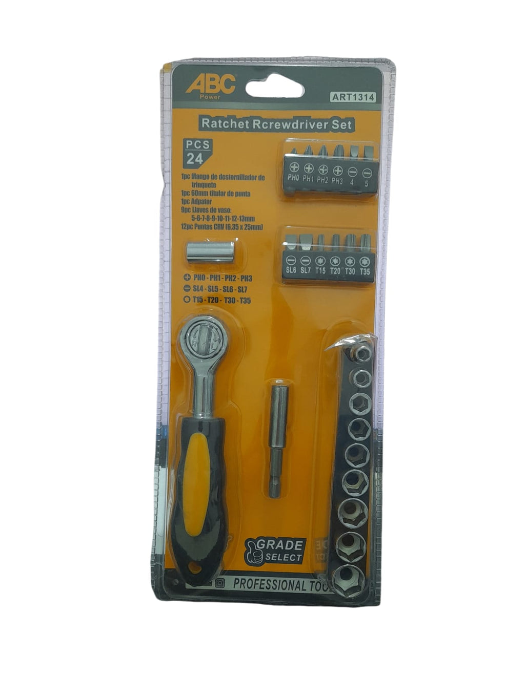 احصل على الكفاءة والمرونة التي تحتاجها في مجموعة أدواتك مع طقم مفك السقاطة الشامل ABC Power ART1314. هذه المجموعة المكونة من 24 قطعة هي رفيقك المثالي لأي مهمة تتطلب ربطًا أو فكًا دقيقًا، سواء في المنزل، السيارة، أو لأعمال الصيانة الخفيفة.